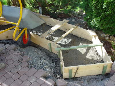 Das mit der Schubkarre hat den Vorteil, dass Du nicht an Ort und Stelle den Zement mischen musst